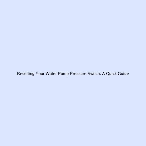 Resetting Your Water Pump Pressure Switch: A Quick Guide