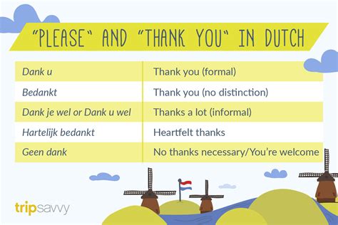While the phrases mentioned above are widely used and understood throughout the Netherlands, there may be some regional variations and slang terms for saying thank you. In some regions, you might hear “merci” , which is borrowed from French. While not as common as “dank je” or “dank u,” it’s still used in certain areas and can be a fun way to add some flair to your Dutch vocabulary. However, be mindful of your audience and the context, as using “merci” in a formal setting might be considered a bit too casual.