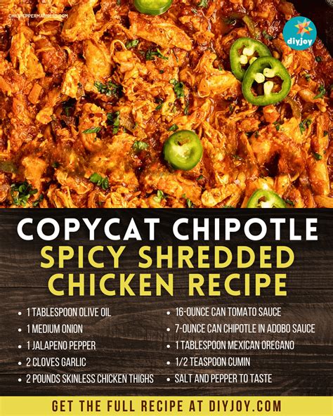 Okay, team, let’s get our hands dirty and whip up this incredible chipotle chicken recipe ! It’s honestly super straightforward, and the results are so worth it. First things first, we need to prep our chicken. If you’re using chicken breasts, you might want to pound them slightly to an even thickness so they cook uniformly. If using thighs, just trim any excess fat. Season both sides generously with salt and pepper. Now, let’s get that chipotle goodness going. In a food processor or blender, combine your chopped chipotle peppers (start with 2, add more if you’re feeling brave!), a couple of tablespoons of the adobo sauce, the lime juice, honey (or brown sugar), cumin, and smoked paprika. Give it a whirl until it forms a relatively smooth paste. If it’s too thick, you can add a tiny splash of water or more adobo sauce. This is our flavor bomb, folks! Next, heat a tablespoon of olive oil in a large skillet or Dutch oven over medium-high heat. Add your seasoned chicken and sear it for about 3-4 minutes per side until nicely browned. Don’t worry about cooking it through at this stage; we’re just building flavor and color. Once browned, remove the chicken from the skillet and set it aside on a plate. Now, lower the heat to medium and add a little more oil if needed. Toss in your chopped onion and sauté until softened and translucent, about 5 minutes. Add the minced garlic and cook for another minute until fragrant – don’t let it burn! Pour in the chicken broth and scrape up any browned bits from the bottom of the skillet; that’s pure flavor there! Now, add your chipotle pepper paste to the skillet and stir it well to combine with the onions, garlic, and broth. Bring the mixture to a simmer. Return the seared chicken (and any accumulated juices!) to the skillet. Spoon some of the sauce over the chicken. Reduce the heat to low, cover the skillet, and let it simmer gently for about 15-20 minutes, or until the chicken is cooked through and tender. The cooking time will vary depending on the thickness of your chicken. Give it a stir occasionally to make sure it doesn’t stick. Once the chicken is cooked, you can remove the lid and let the sauce thicken slightly if needed. If you want a creamier sauce, now’s the time to stir in a dollop of sour cream or Greek yogurt. Taste and adjust seasonings – maybe more salt, pepper, or a touch more lime juice? Finally, serve it up hot! Shredding the chicken right in the sauce is a great option for tacos or bowls. Slice it for a main course. This is your moment, guys! Enjoy that amazing chipotle chicken!