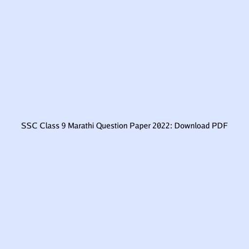 SSC Class 9 Marathi Question Paper 2022: Download PDF