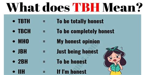 Let’s look at a few more scenarios. If someone asks for your opinion on something, TBH is your best friend. “What did you think of the presentation?” Response: “TBH, it was a bit long, but the content was solid.” This gives a balanced, honest feedback. If you’re feeling a bit shy about admitting something, TBH can help. “TBH, I’m kinda nervous about the exam.” It makes the admission feel more personal and less like a complaint.