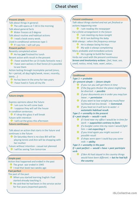 Okay, so why bother with a tenses cheat sheet in the first place? Well, think about it: English has a bunch of different tenses, and each one is used to show when an action happened or will happen. Without a solid understanding of tenses, your writing can get confusing really fast. Imagine trying to explain a past event but accidentally using the future tense – that could lead to some serious misunderstandings! A tenses cheat sheet acts like your personal grammar guru, giving you a quick and easy reference whenever you need it. It’s perfect for students, writers, ESL learners, or anyone who wants to brush up on their English skills. Plus, having a PDF version means you can access it anytime, anywhere, even when you’re offline. No more grammar guesswork – just clear, concise explanations at your fingertips.