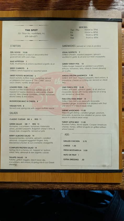 When we talk about The Spot Northfield menu , we’re talking about a carefully curated selection of dishes designed to please a wide range of palates. They really pride themselves on using fresh, quality ingredients, and it totally shows in every bite. You’ll find a mix of classic comfort foods and some more unique creations, ensuring that there’s always something new to discover, even for the most seasoned diners. The atmosphere at The Spot is usually buzzing, making it a perfect place to gather with friends, family, or even enjoy a solo meal. The staff are generally super friendly and knowledgeable about the menu, so don’t hesitate to ask for recommendations if you’re feeling indecisive. They often have daily specials too, which are a fantastic way to try seasonal dishes or chef’s latest inspirations. Keep an eye out for those – they’re usually printed separately or announced by your server. It’s this attention to detail, from the food quality to the customer service, that keeps people coming back for more. You’re not just getting a meal; you’re getting an experience, and that’s something truly special in today’s fast-paced world. So, grab a seat, relax, and get ready to explore the delicious possibilities waiting for you on The Spot Northfield menu.