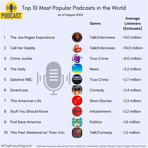 What’s up, podcast lovers! If you’re anything like me, you’re always on the hunt for the next amazing podcast to binge. Whether you’re commuting, hitting the gym, or just chilling at home, podcasts are the ultimate companions. Today, we’re diving deep into the top 10 podcasts that are absolutely crushing it right now. We’ve got a mix of everything – true crime, comedy, news, self-improvement, and so much more. So buckle up, grab your headphones, and let’s explore some seriously good listening material that you won’t want to miss. We’re talking about shows that make you think, make you laugh, and maybe even make you cry (in a good way, usually!).