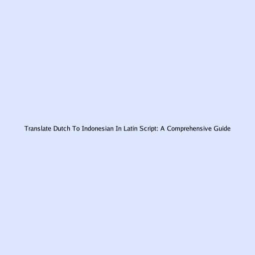 Translate Dutch To Indonesian In Latin Script: A Comprehensive Guide