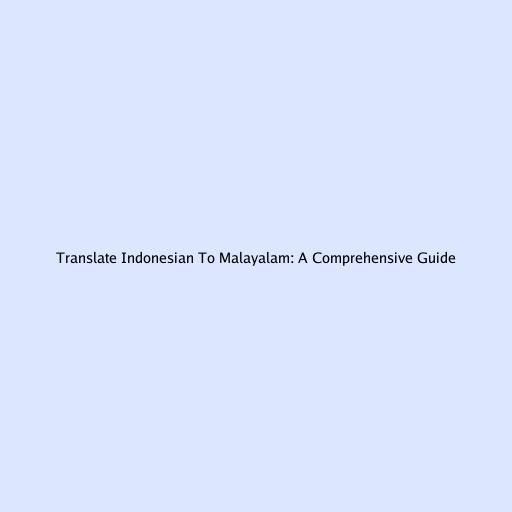 Translate Indonesian To Malayalam: A Comprehensive Guide