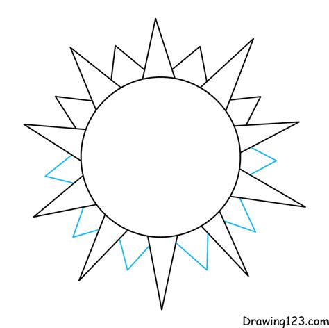 2. Menambahkan Sinar Matahari: Setelah membuat lingkaran, tambahkan sinar matahari di sekelilingnya. Sinar matahari bisa dibuat dengan berbagai bentuk, misalnya garis lurus, garis bergelombang, atau bahkan bentuk yang lebih kreatif. Buatlah sinar matahari yang keluar dari lingkaran dengan jarak yang sama.