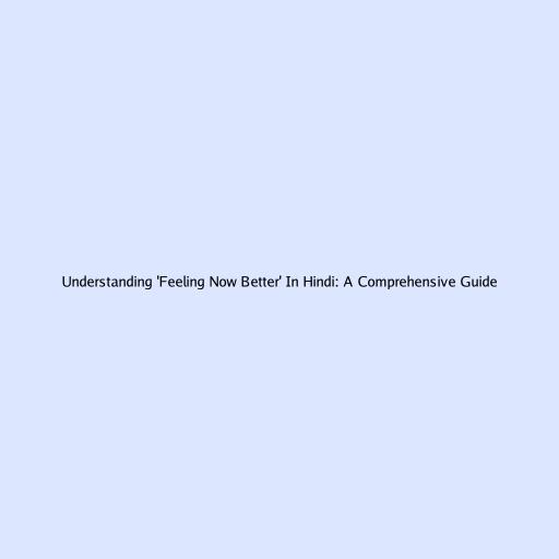 Understanding 'Feeling Now Better' In Hindi: A Comprehensive Guide