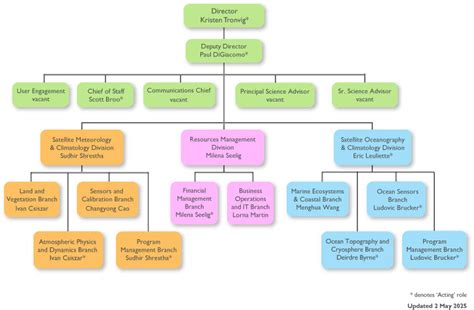 So, there you have it! A comprehensive look at the NESDIS STAR organizational chart . Hopefully, this guide has helped you understand the structure and function of this important organization. By understanding the different divisions, offices, and teams within STAR, you can gain a better appreciation for the vital work they do in advancing satellite science and technology. Remember, the org chart isn’t just a static document; it’s a reflection of a dynamic and evolving organization that’s dedicated to understanding and protecting our planet. Keep exploring, keep learning, and keep supporting the important work of NESDIS STAR!