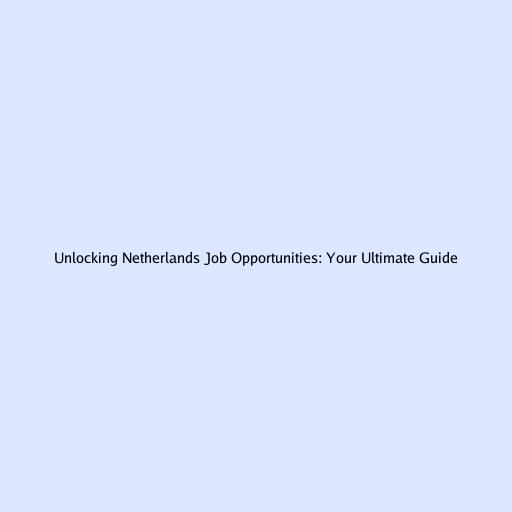 Unlocking Netherlands Job Opportunities: Your Ultimate Guide
