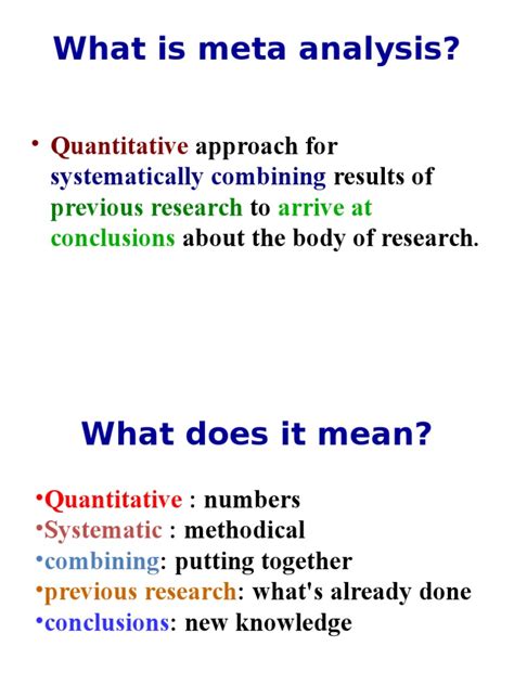 Hey everyone! Today, we’re diving deep into the fascinating world of meta-analysis and, more importantly, understanding its core aims . You know, sometimes you read a bunch of studies on the same topic, and they all seem to say slightly different things, right? It’s like trying to get a clear picture from a bunch of blurry photos. That’s where meta-analysis swoops in like a superhero to save the day! Essentially, a meta-analysis is a statistical technique used to combine the results from multiple independent studies that all investigated the same research question. The primary goal is to synthesize existing research, providing a more robust and reliable conclusion than any single study could offer on its own. Think of it as taking all those blurry photos and using advanced software to create one crystal-clear, high-resolution image. The ultimate aim is to increase the statistical power of the analysis, reduce uncertainty, and provide a more definitive answer to a research question. It’s all about getting the big picture and making sense of a body of evidence. So, why do researchers go through all the trouble of conducting a meta-analysis? The reasons are plenty, and they all point towards achieving a more comprehensive understanding of a particular phenomenon. One of the most significant aims is to increase statistical power . When individual studies have small sample sizes, their ability to detect a true effect (if one exists) is limited. By pooling data from multiple studies, the overall sample size is dramatically increased, making it much easier to identify even small but significant effects. This enhanced power is crucial for making reliable inferences and avoiding Type II errors (failing to reject a false null hypothesis). Another key aim is to resolve conflicting findings . As we mentioned, different studies can yield contradictory results due to variations in methodology, sample characteristics, or even random chance. A meta-analysis can help determine whether the observed differences are genuine or just statistical noise. It can identify patterns across studies and explain why results might differ, leading to a clearer understanding of the phenomenon.