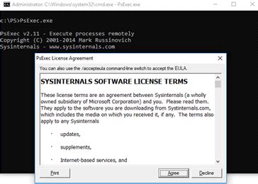 • psexec : This is the executable file for PsExec. Make sure it’s in your system’s PATH or that you’re running the command from the directory where you saved PsExec.exe .
