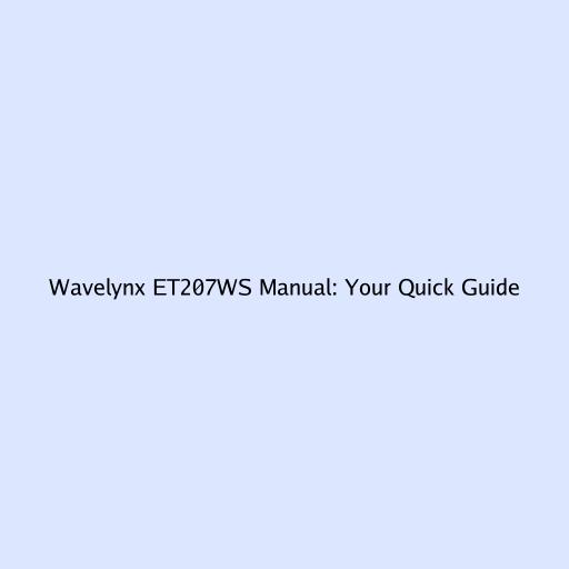 Wavelynx ET207WS Manual: Your Quick Guide