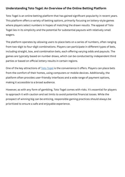 Now, let’s talk about responsible gambling . Toto Togel should be a fun pastime, not a financial burden. Set a budget for your Toto Togel activities and stick to it. Never gamble with money you can’t afford to lose. Most reputable Toto Togel sites offer features like deposit limits and self-exclusion options. Use these tools to control your spending and prevent problem gambling. Take regular breaks from gambling to avoid getting carried away. Remember, it’s all about having fun responsibly.